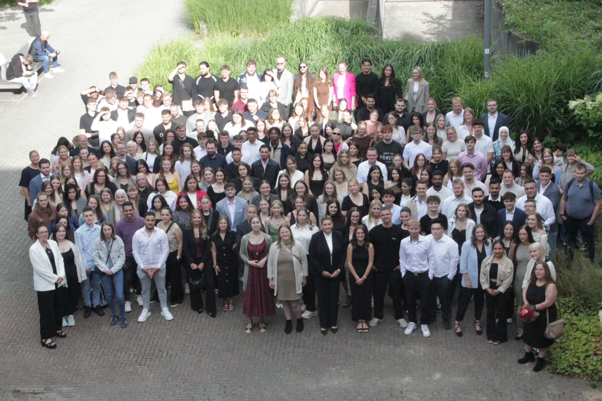 Dann folgen die Beweise, dass der Prüfungsdrache tatsächlich besiegt ist: Schulleiter Tobias Raue ehrt gemeinsam mit den Klassenlehrer:innen die besten Schülerinnen und Schüler aus den Bildungsgängen. Danach ein allerletzter „altbekannter Weg“ in die Klassenräume, die Zeugnisse werden ausgeteilt. Mit dem gemeinsamen Zuprosten in der Aula endet der mehrjährige Kampf gegen den Ausbildungsdrachen – mit einem phänomenalen Sieg.