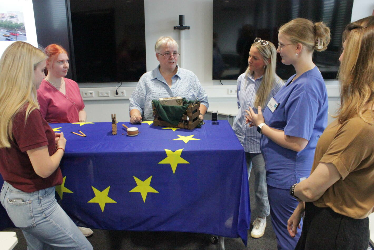 Der Schulleiter sieht das Trio als Wegbereiter für künftige Schülerinnen und Schüler, als Botschafter der Kaufmännischen Schulen und des Bildungsganges der Medizinischen Fachangestellten. Und Marcus Maassen lobt die drei Schülerinnen für ihren Mut und die Praxen (Marie Land: ÜBAG Möhlenkamp/ Rehkämper/ Winter; Fachärzte für Innere und Allgemeinmedizin; Jule Nieweler (Praxis Dr. Doumat/ Fischer/ Fruhner; Fachärzte für Allgemeinmedizin und Isabella Promehl (Mathias-Stiftung, Mathias-Spital) für ihre Offenheit dem neuen Schul-Projekt gegenüber. „Das ist echter Pionier-Spirit.“