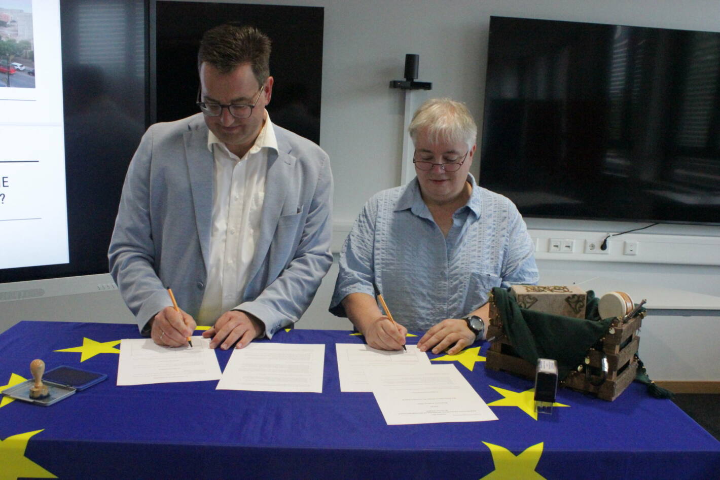 „Pioniere“. Der Begriff fällt nun schon zum dritten Mal. Schnelle Suche nach einem Synonym: „Wegbereiter“ oder „Bahnbrecher“ sind die Wortalternativen. Sie stehen für Menschen, die Neuland betreten in einem Forschungsgebiet, im gesellschaftlichen Bereich oder in der persönlichen Entwicklung. Passt. Denn in dieser Beschreibung dürften sich Isabella Promehl, Jule Nieweler und Marie Land sofort wiederfinden. Gegen Ende dieses Jahres werden die drei Schülerinnen der Kaufmännischen Schulen ins nordafrikanische Marokko reisen und dort im Berufsbildungszentrum in Beni Millal ihre Kenntnisse als angehende medizinische Fachangestellte erweitern. Land und Leute kennenlernen, sich sprachlich und persönlich weiterentwickeln, das sind weitere Ziele ihrer Reise. Das Trio betritt damit tatsächlich schulisches Neuland. Denn erst vor wenigen Tagen haben die Kaufmännischen Schulen und die Renaissance Academy Rabat eine Absichtserklärung für eine Schulkooperation unterzeichnet. Für Schulleiter Tobias Raue war dies „ein ganz wunderbarer Termin“. Neben Raue unterzeichnete Elke Pruß, Projektmanagerin der Academy, den Vertrag.