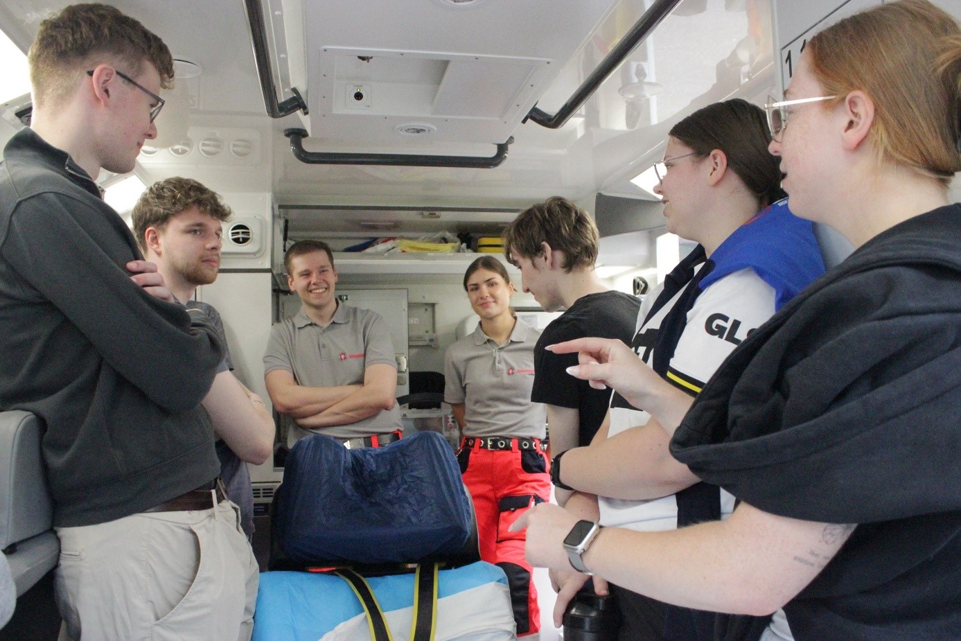 Einblicke: Die Schülerinnen und Schüler hatten im Rettungswagen viele Fragen an die Einsatzkräfte.